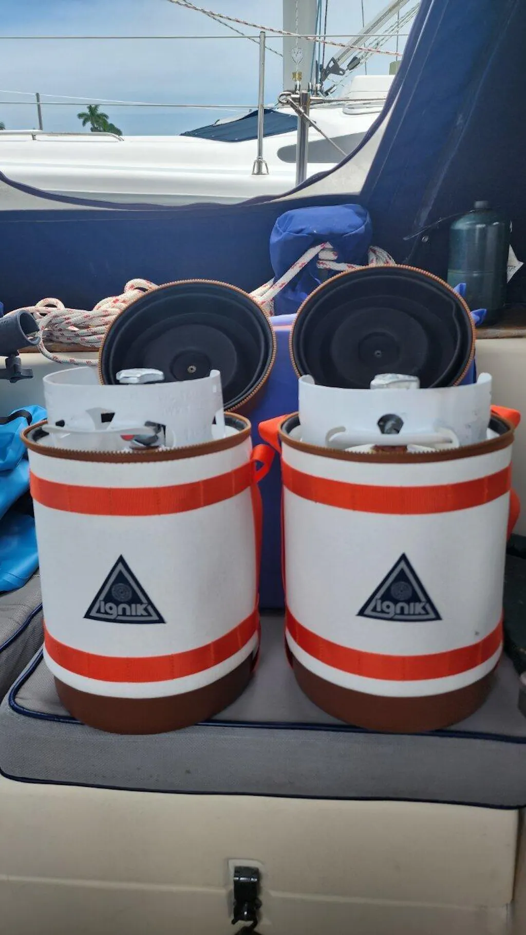After searching for a way to protect my 5lb propane tanks aboard my sailboat from the harsh marine environment, I came across these heavy duty propane cases by Ignit. They are available in black or white. I chose white to keep the tanks cooler in the hot tropical sun. Ignik also sells various size tanks and cases. This review page won't allow an MP4 video file so here's a link