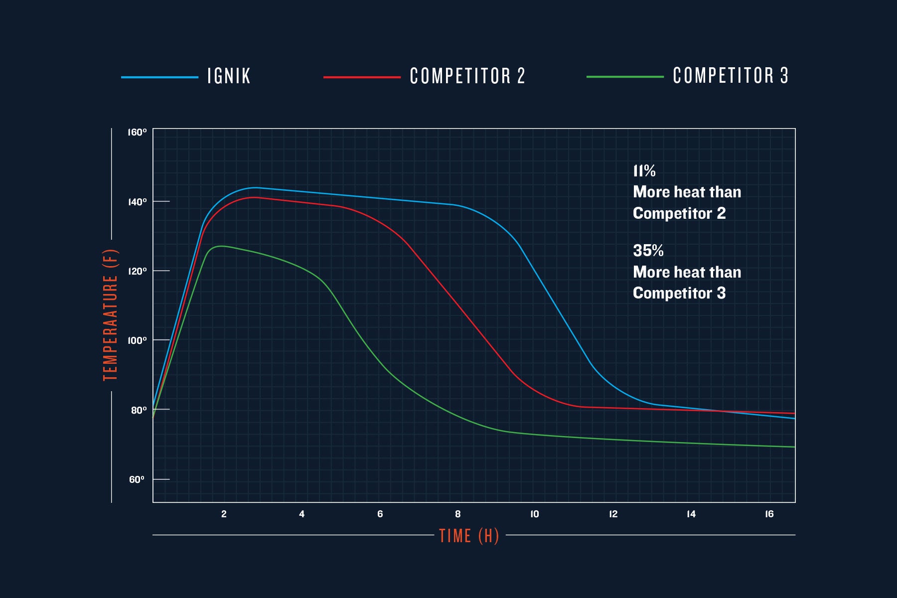 HEAT TEST RESULTS Temperature efficiency over time.