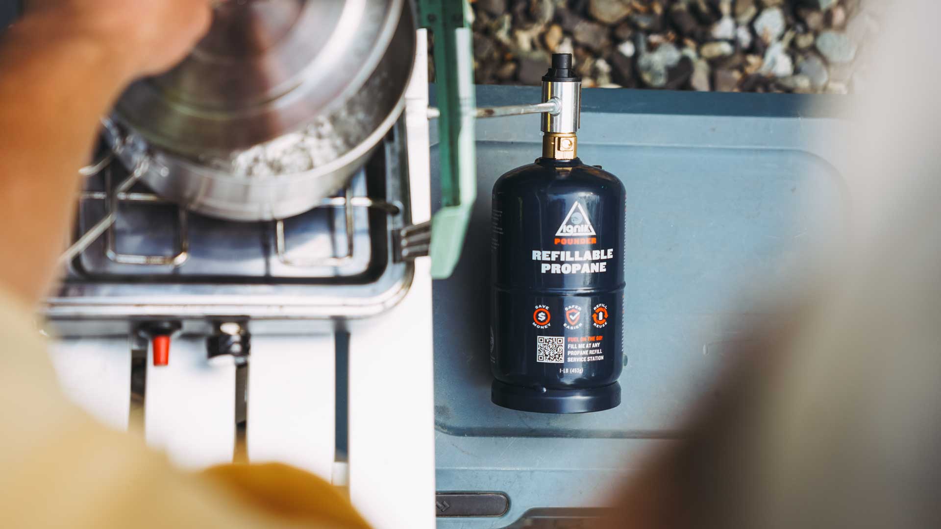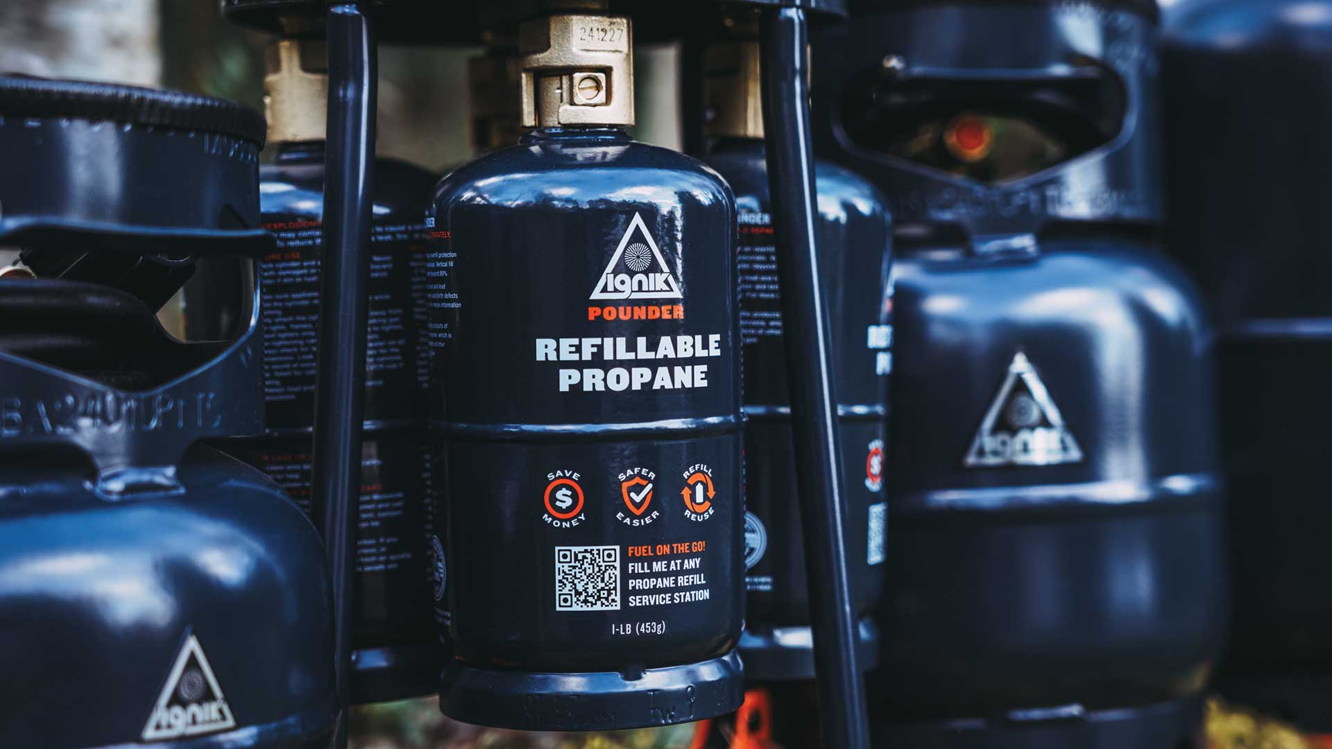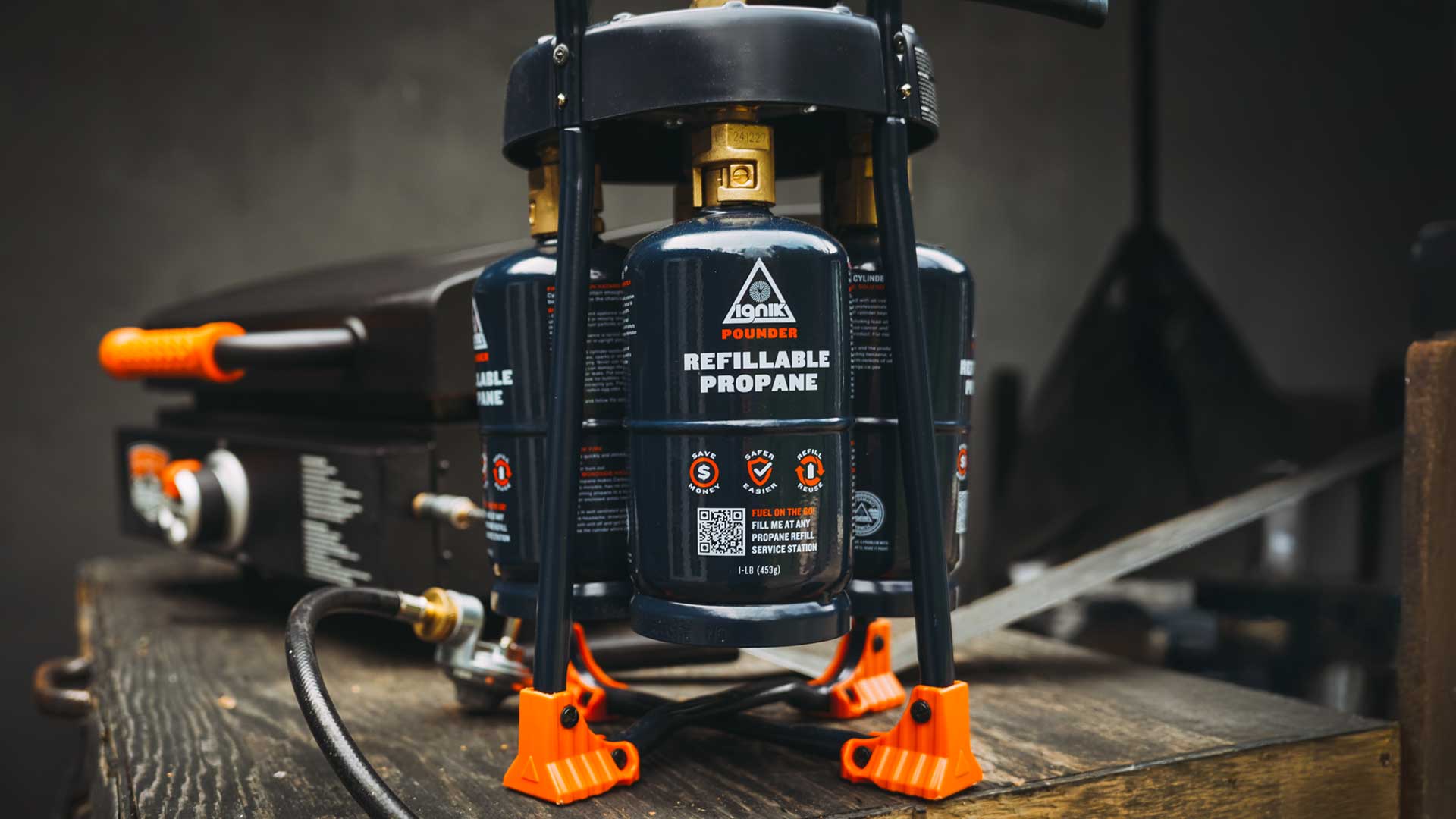 Ignik Pounder bottles are gas cylinders with a standard valve and 1”-20UNEF thread on the top of the bottle. They provide fuel for camping stoves, lanterns & heaters that use the typical 1lb single use green bottles that we are accustomed to.