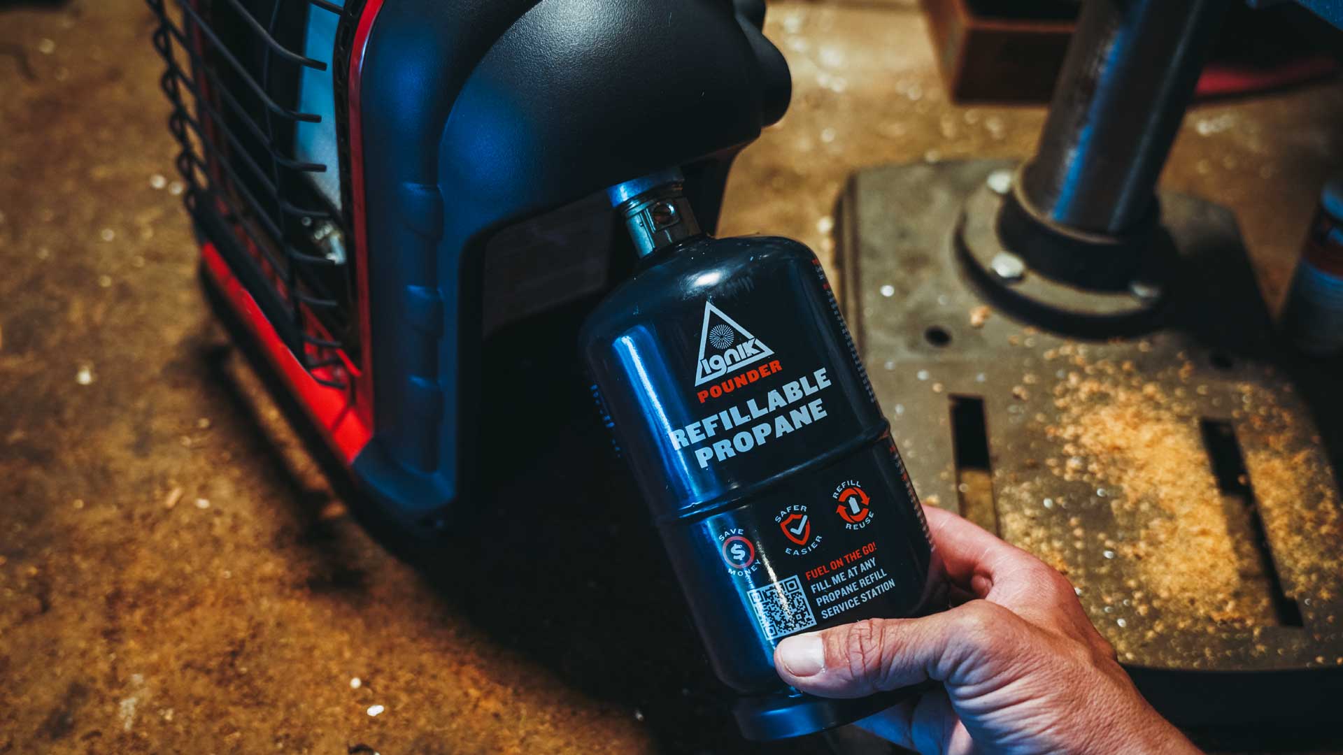 The Pounder bottles are each designed with a special bleeder valve that allows you to entirely fill each cylinder safely and quickly at your local propane filling station.